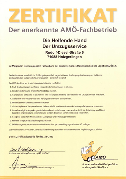 "Wer einen Fachbetrieb für seinen Umzug beauftragt, schont erstens seine Nerven, weil ihm, wenn gewünscht, zwischen Einpacken und Abbauen am alten Wohnort und Auspacken und Aufbauen im neuen Zuhause alles von geschultem Fachpersonal abgenommen wird." betont Dierk Hochgesang, Geschäftsführer des Bundesverbands Möbelspedition und Logistik (AMÖ) e.V., der die Interessen von mehr als 1.000 Umzugsspeditionen vertritt. "Zweitens können Privatpersonen ihre Umzugskosten von der Steuer absetzen und dadurch richtig Geld sparen!"