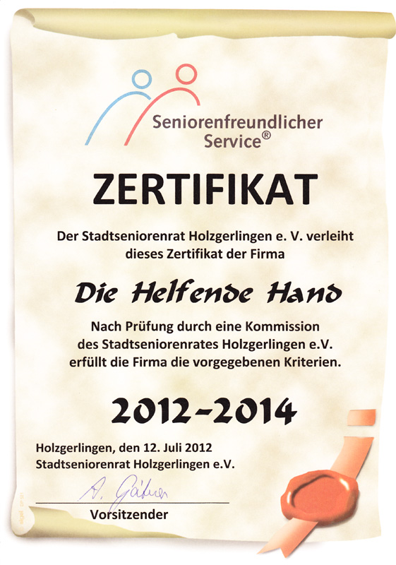 Für den Umzugsservice "Die Helfende Hand" war es nicht besonders schwer den Anforderungen des Stadtseniorenrates zu entsprechen - schließlich gehören zum Portfolio der "Helfenden Hand" unter anderem Umzüge speziell für Senioren. Seit Jahren arbeiten wir intensiv daran unseren Service in diesem, wie in allen anderen Bereichen, die wir Ihnen anbieten, kontinuierlich zu verbessern. Die Auszeichnung des RAT bestätigt uns nun darin, das wir mit unserem Umzugsservice auf dem richtigen Weg sind.